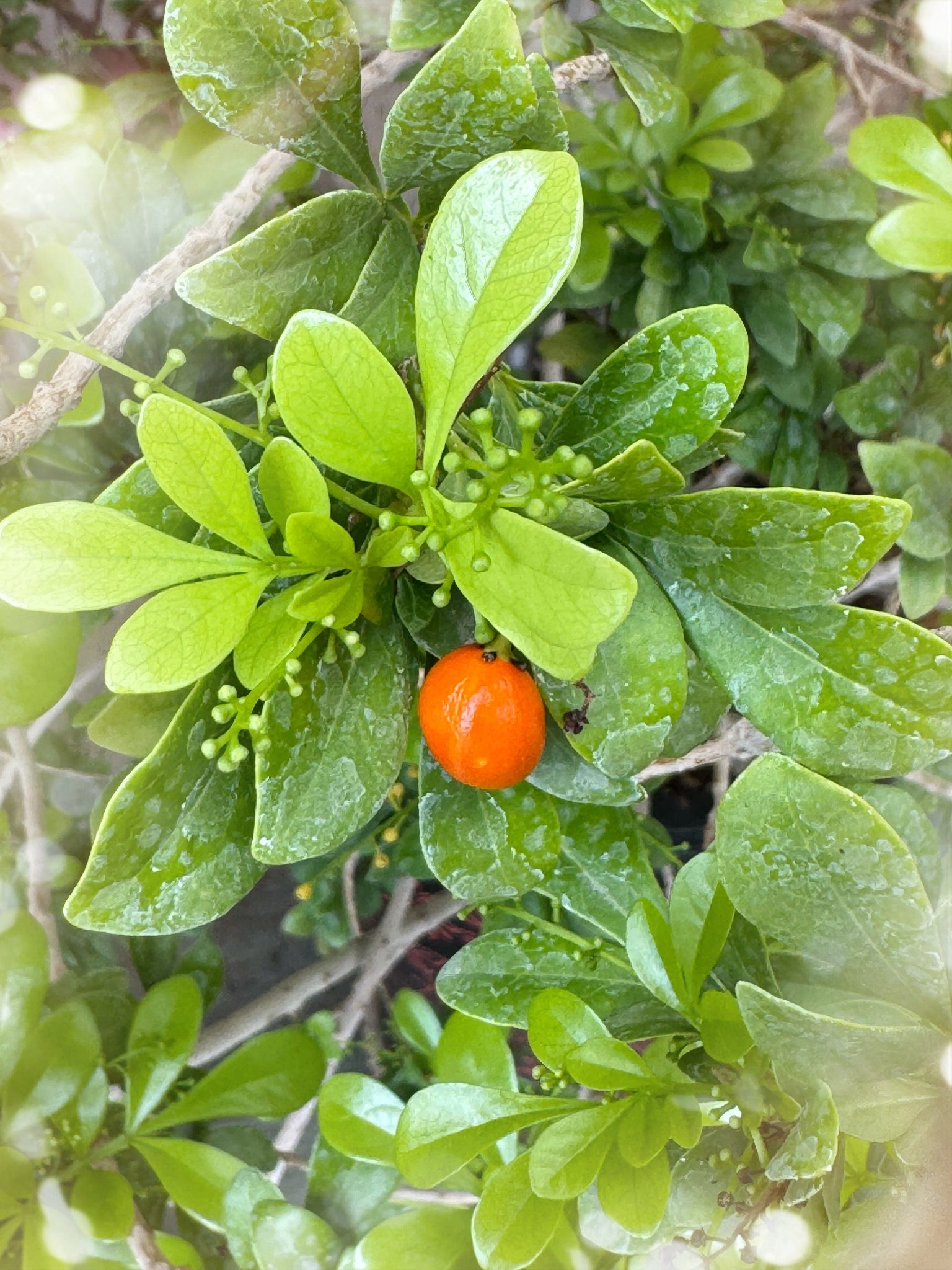 养了12年多的米兰花,今天早上第一次看见结了一个小果果,米兰花结果,从没见过,甚以为奇~