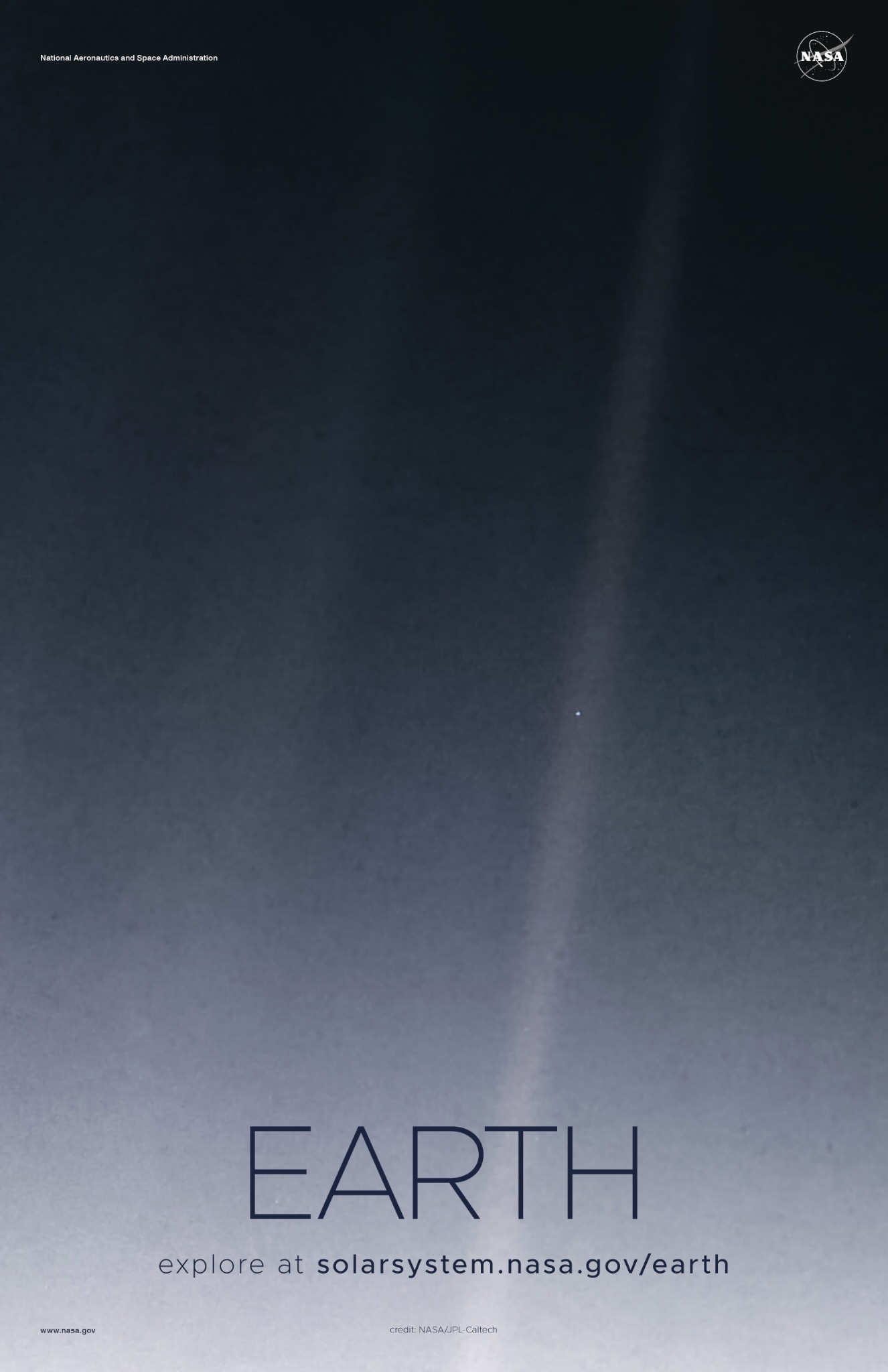 淡藍點是1990年2月14日由美國宇航局的旅行者1號在距離太陽37億英里(60億公里)的距離拍攝的地球照片。 這張圖片啟發了科學家卡爾·薩根的書名《淡藍點:太空中人類未來的願景》,他在書中寫道:「再看看那個點。 就在這裡。 那是家。 那就是我們。」你所愛的每一個人,你認識的每一個人,你聽說過的每一個人,曾經有過的每一個人,都在它的上面度過他們的一生。
