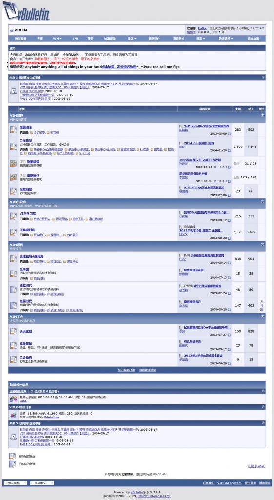很久很久前,选择了BBS社区PHP程序 vbulletin 3.81进行一定程度的改进和调整,搭建了VIM自己内部的OA系统,建立了项目知识库,方便成员进行专业知识学习,信息交流和内部管理……