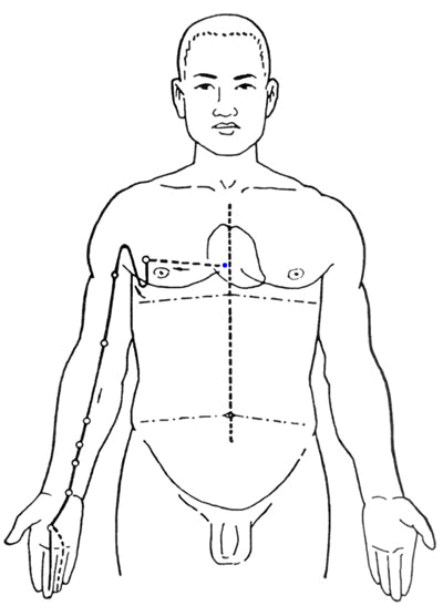 and Heart Meridian to the cublital fossa, further downward to the forearm